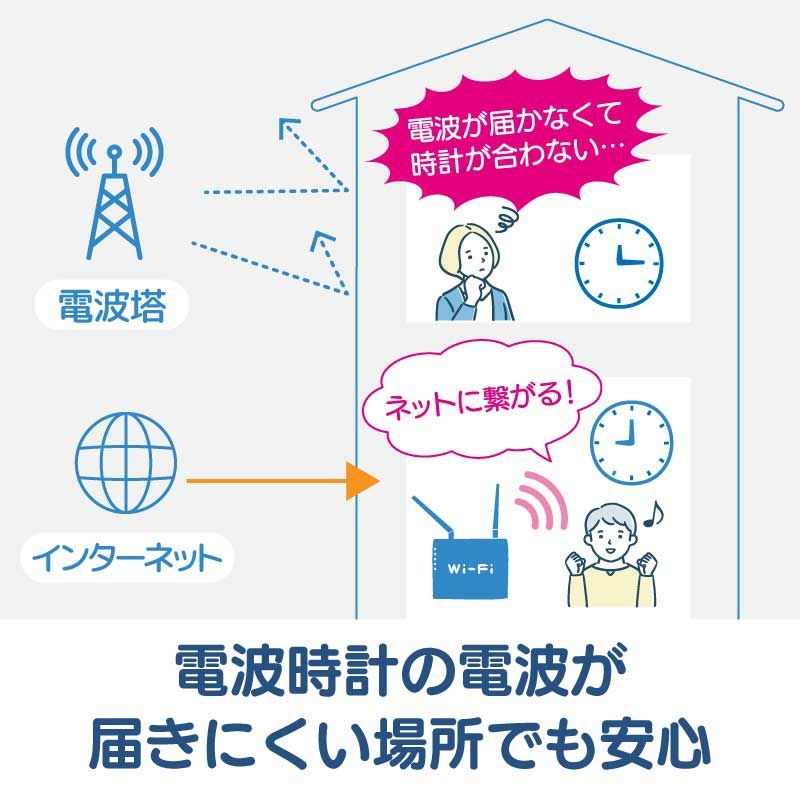 • 室内のネット環境(Wi-Fi)を利用して正しい時刻を同期