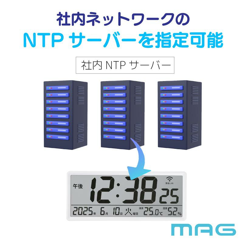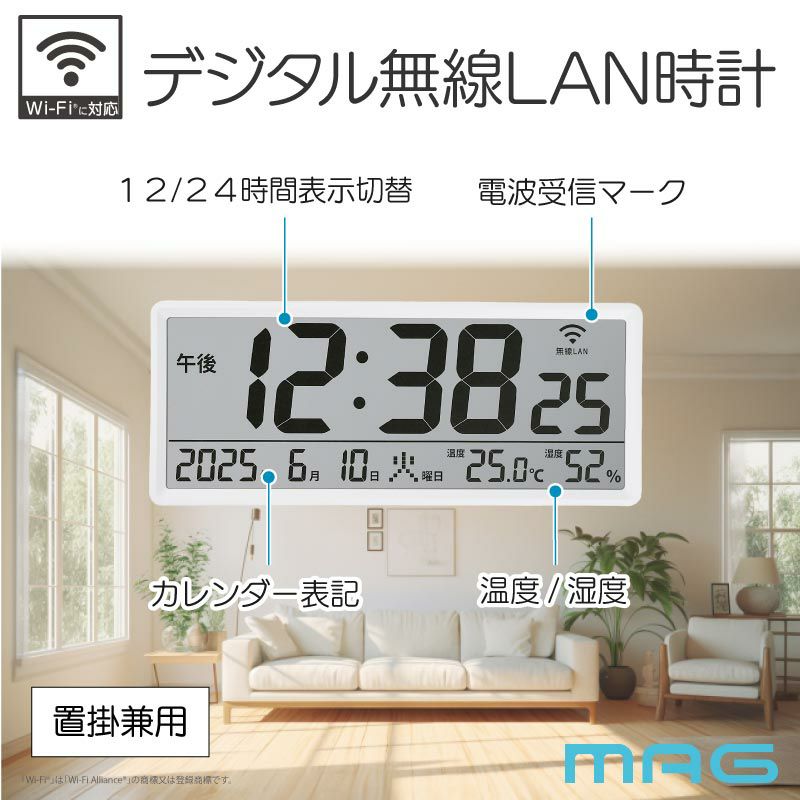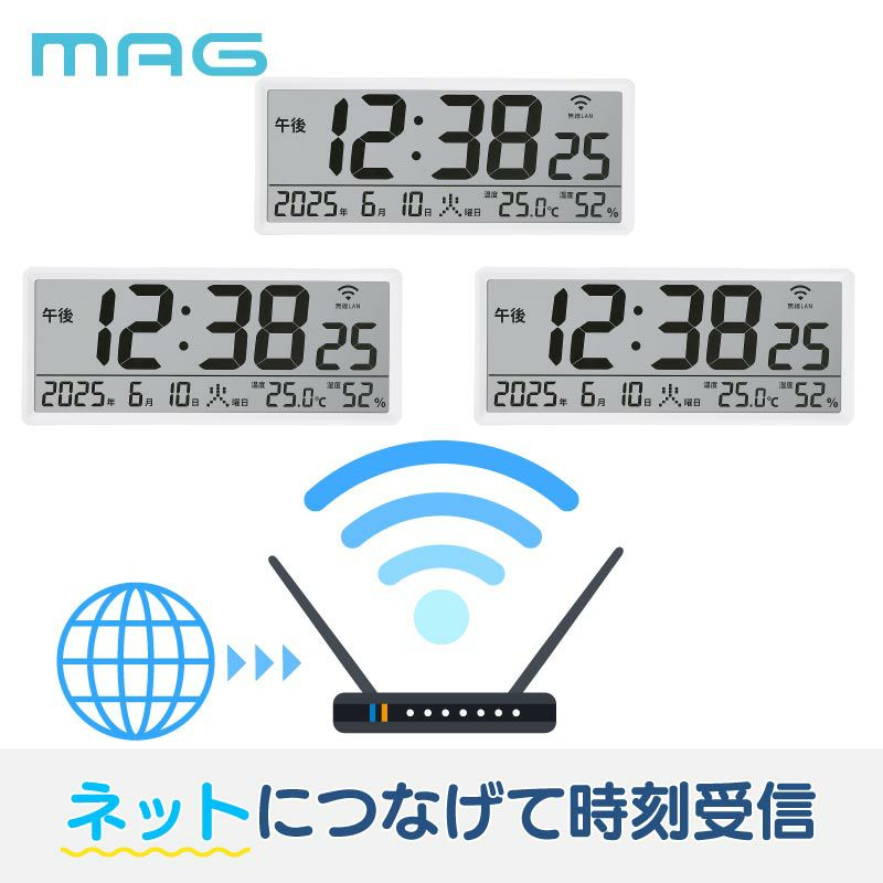2025年11月中旬発売【NTP時計】Wi-Fiでネットと接続し時刻を同期できるデジタル時計 無線LAN大型時計 W821