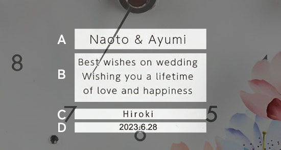 • 贈る相手のお名前やメッセージを刻んでいてもアートのように飾れるおしゃれなクロックです。