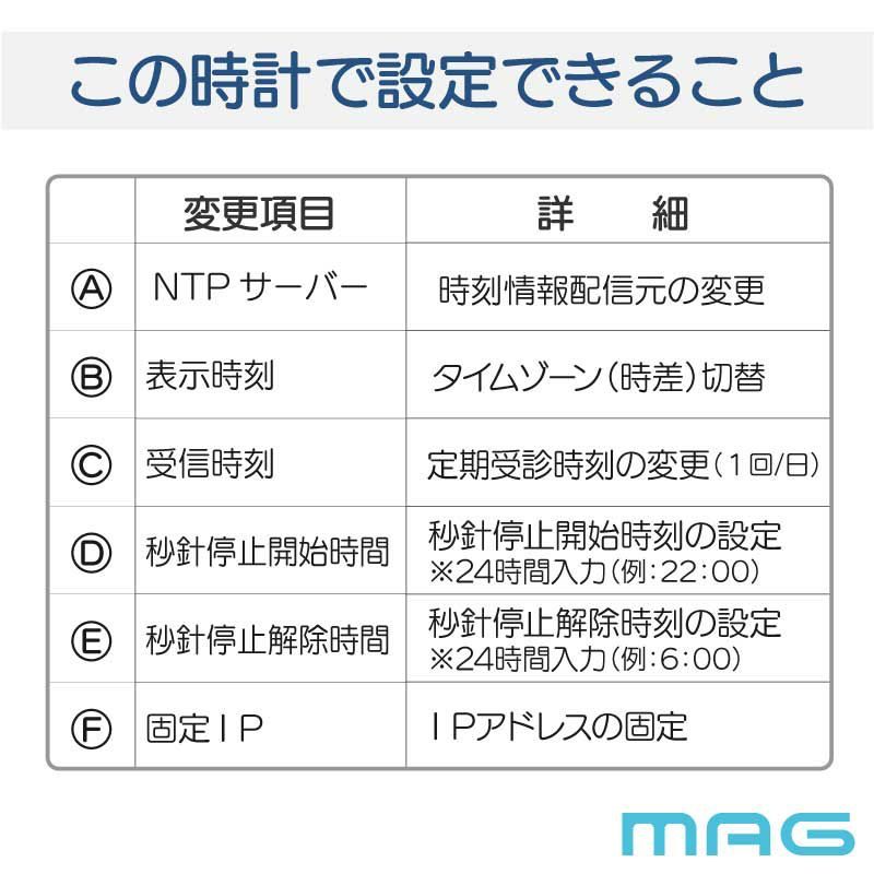 他の画像を見る NEW ステップ NTPサーバ対応 電池別 (0) 【NTP時計】Wi-Fiでネットと接続し時刻を同期できる掛け時計 無線LAN掛時計 W825 通常価格 ¥ 19,800 税込 会員価格 ¥ 14,080 税込 お気に入りに登録する
